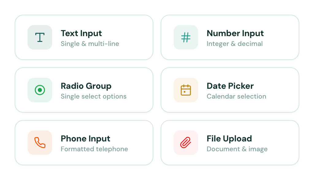- ✓ 11 input types with built-in validation